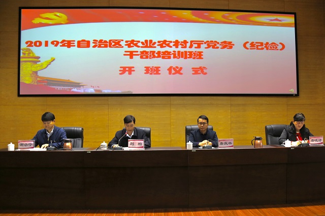 为深入贯彻习近平新时代中国特色社会主义思想,全面落实新时代党的政治建设总要求,坚持基层导向、问题导向、效果导向和可持续导向,深入推进全年党建工作落实到位,全面提升全区农业农村系统党务(纪检)干部的业务水平,10月28日至11月1日,自治区农业农村厅在桂林市委党校举办了2019年自治区农业农村厅党务(纪检)干部培训班。自治区农业农村厅党组成员、驻厅纪检监察组组长刘柏出席开班仪式并讲话。