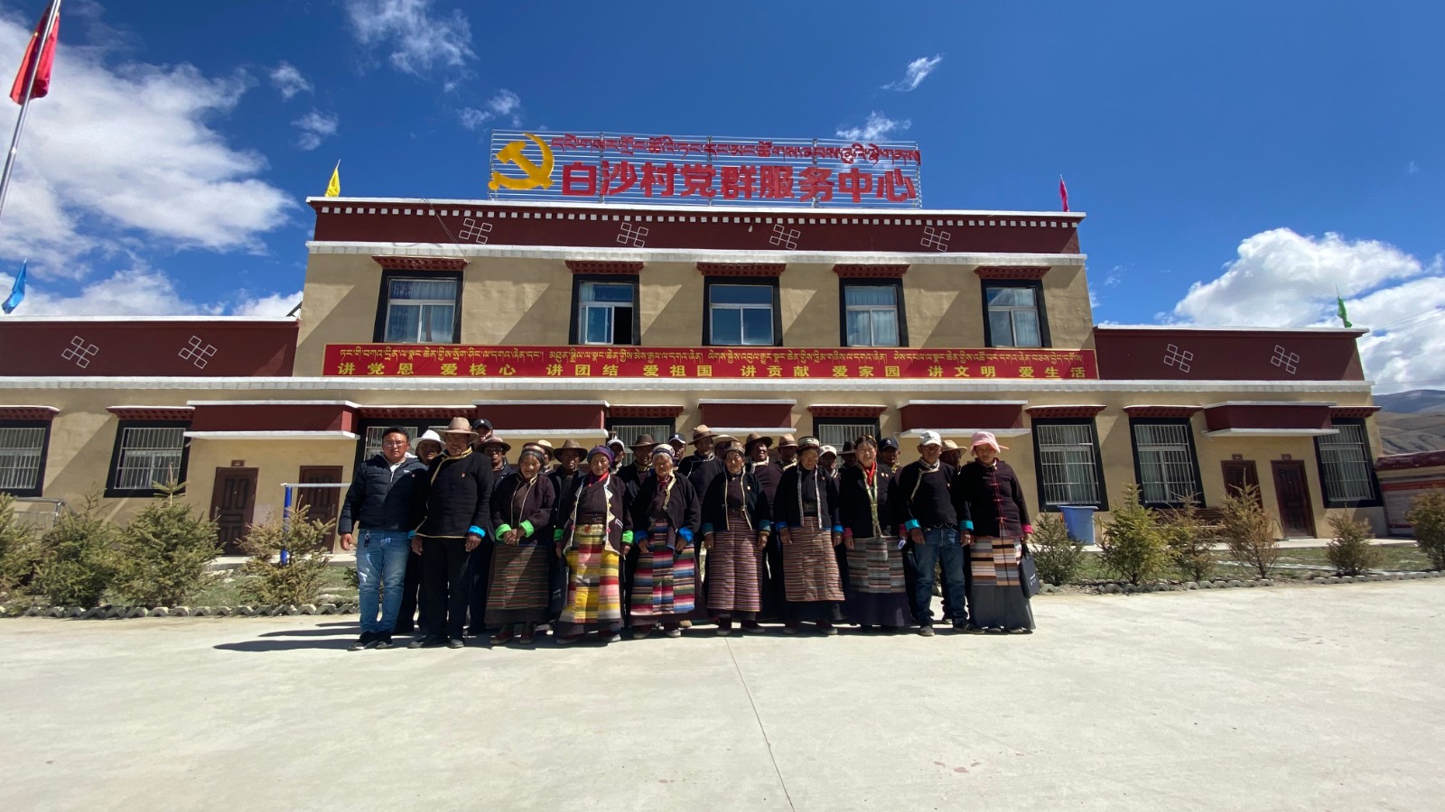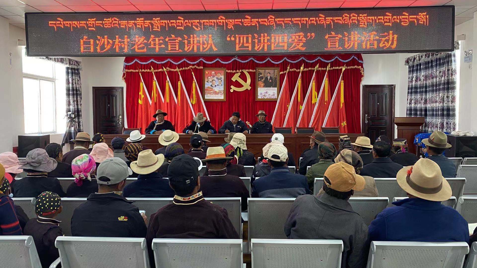 与此同时,白沙村还有一支平均年龄在63岁以上的老年宣讲志愿服务队,他们都是旧西藏的亲历者。他们通过深入农户、田间地头、茶馆、寺庙等场所,结合自己的亲身经历,利用生动感人的语言,以喜闻乐见的形式,向广大农牧民群众讲述旧西藏与新西藏之间的翻天覆地变化,使他们充分明白了“惠在何处,惠从何来”“吃水不忘挖井人”的道理,更加坚定了永远跟党走的信心和决心。