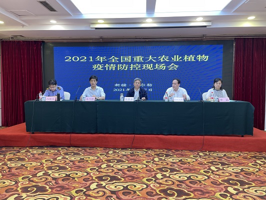 5月27日,农业农村部在新疆库尔勒市组织召开2021年农业重大植物疫情防控现场会。来自各省级植物检疫机构、新疆生产建设兵团、海南南繁管理局的分管检疫负责同志50人参加会议。